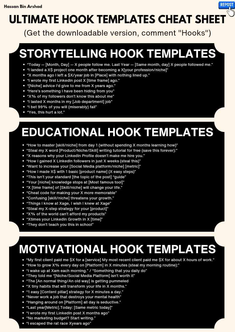 Ultimate Hook Templates Cheat Sheet